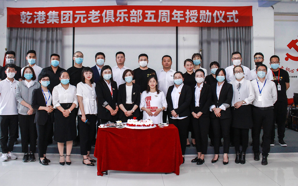 2020年5月28日,乾港集團(tuán)元老俱樂部五周年授勛儀式隆重召開,乾港集團(tuán)對3位工齡超過5年以上的老員工授予榮譽(yù)勛章,感謝元老們在乾港集團(tuán)發(fā)展中做出的貢獻(xiàn)。乾港集團(tuán)董事長?安俊峰先生?、乾港集團(tuán)常務(wù)副總裁?趙明華先生等領(lǐng)導(dǎo)出席大會并為老員工頒獎。
